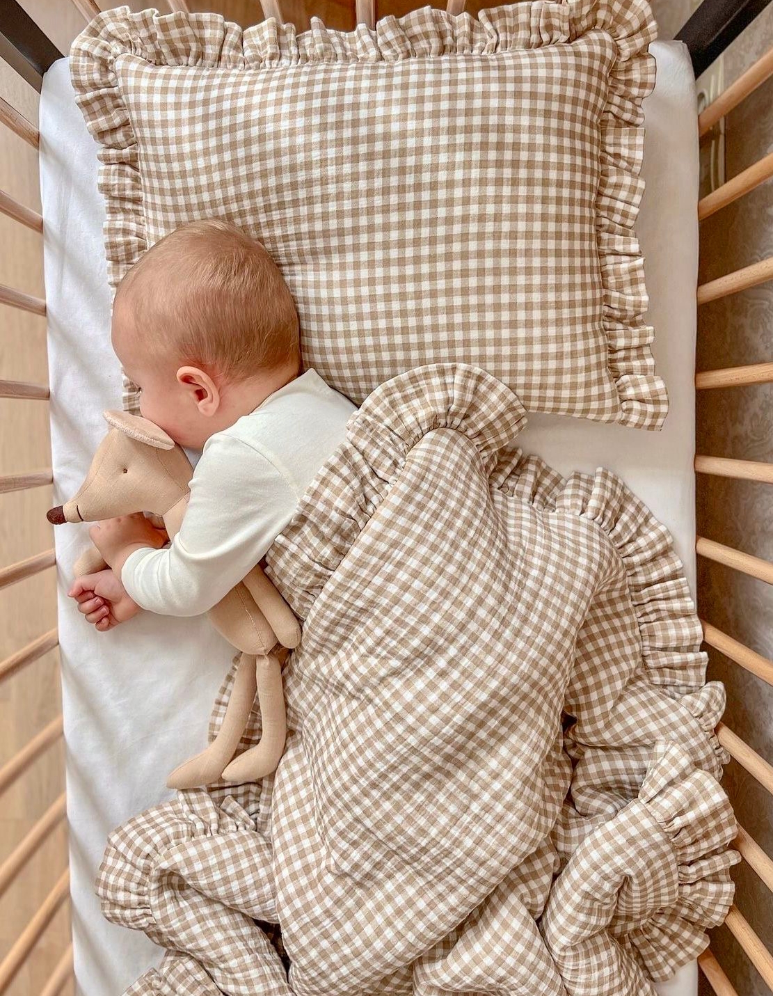 تمامی مدلهای روتختی نوزاد به همراه بالشت الیاف ویسکوز داره اعلا ضد حساسیت هست قیمت بالشت کشیده شده روی ست روتختی جنس پارچه کتان نخ وارداتی