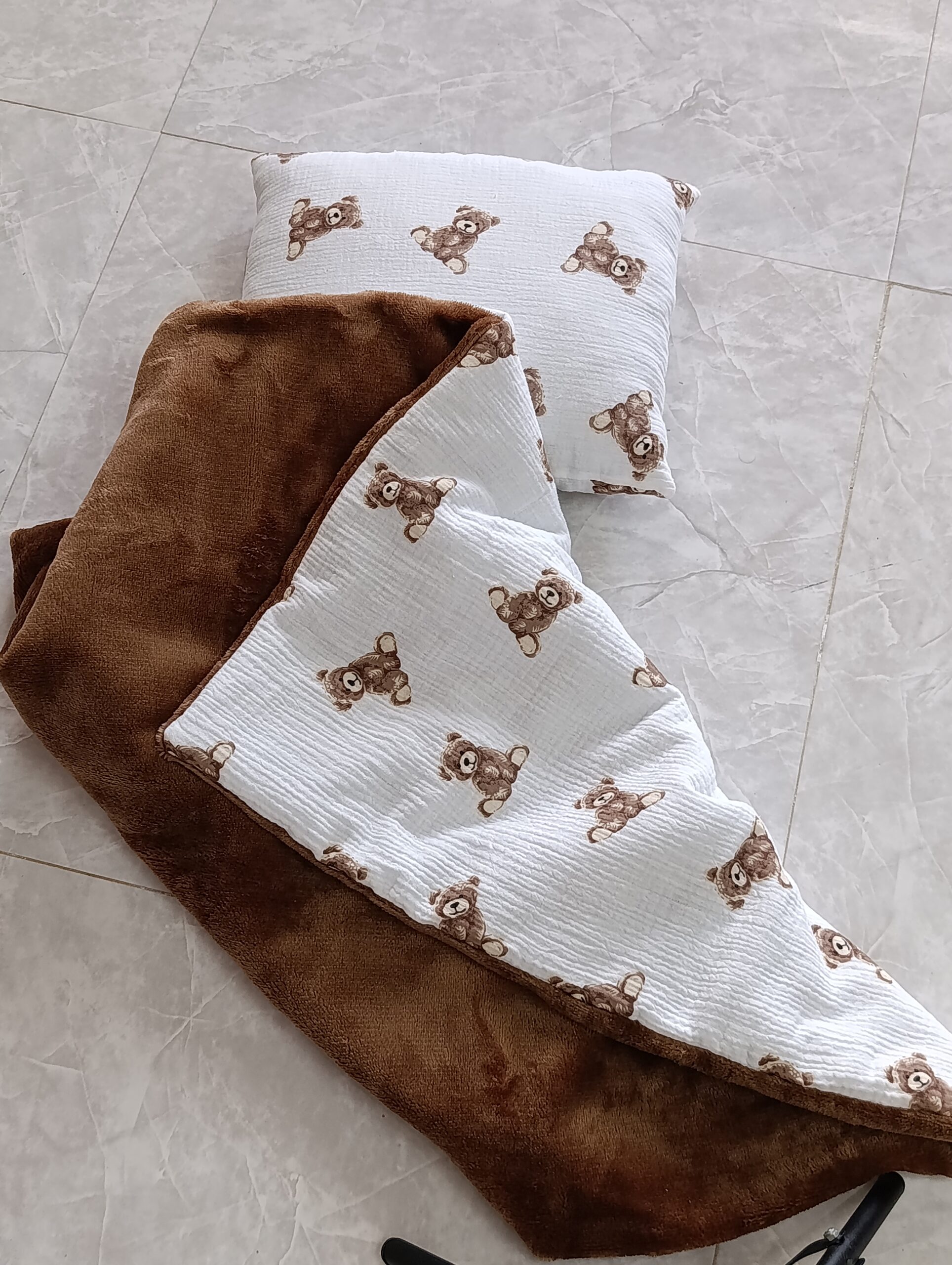 این ست شامل یک بالشت یک پتو دو رو میباشد پارچه وارداتی بهترین کیفیت بازار بسیار نرم و لطیف هست از نوزادی تا یکسالگی قابل استفاده هست رنگ پارچه متغییر هست در صورت تمایل به سفارش از طریق پشتیبانی مشاوره بگیرید
